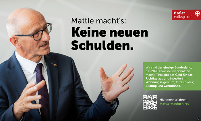 Wahrscheinlich bin ich heuer wohl der einzige Landeshauptmann, der gerne über sein Budget spricht. Denn Tirol ist das erste und einzige Bundesland Österreichs, das für 2026 und 2027 keine neuen Schulden macht. Damit ist uns eine echte Trendumkehr in der Finanzpolitik gelungen.